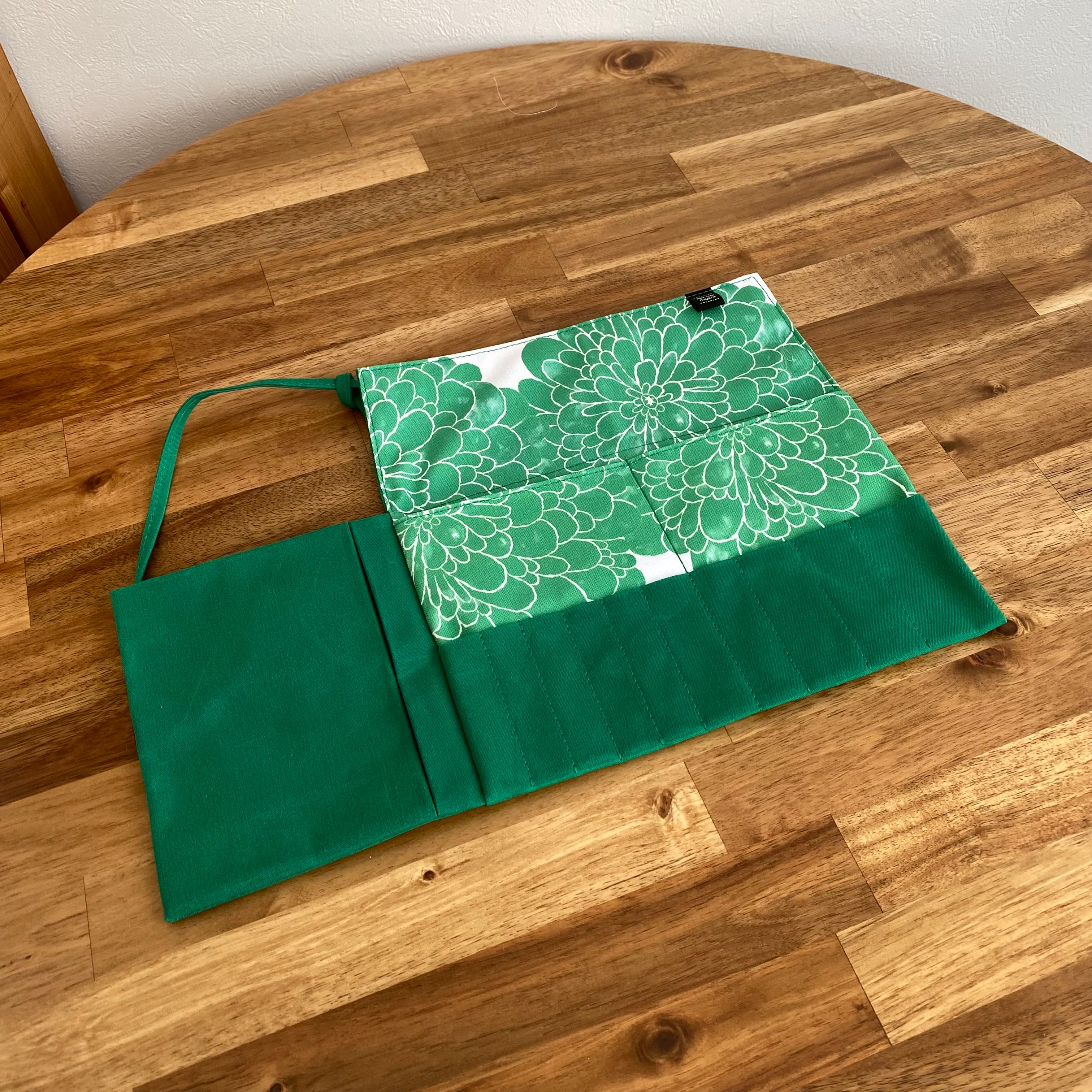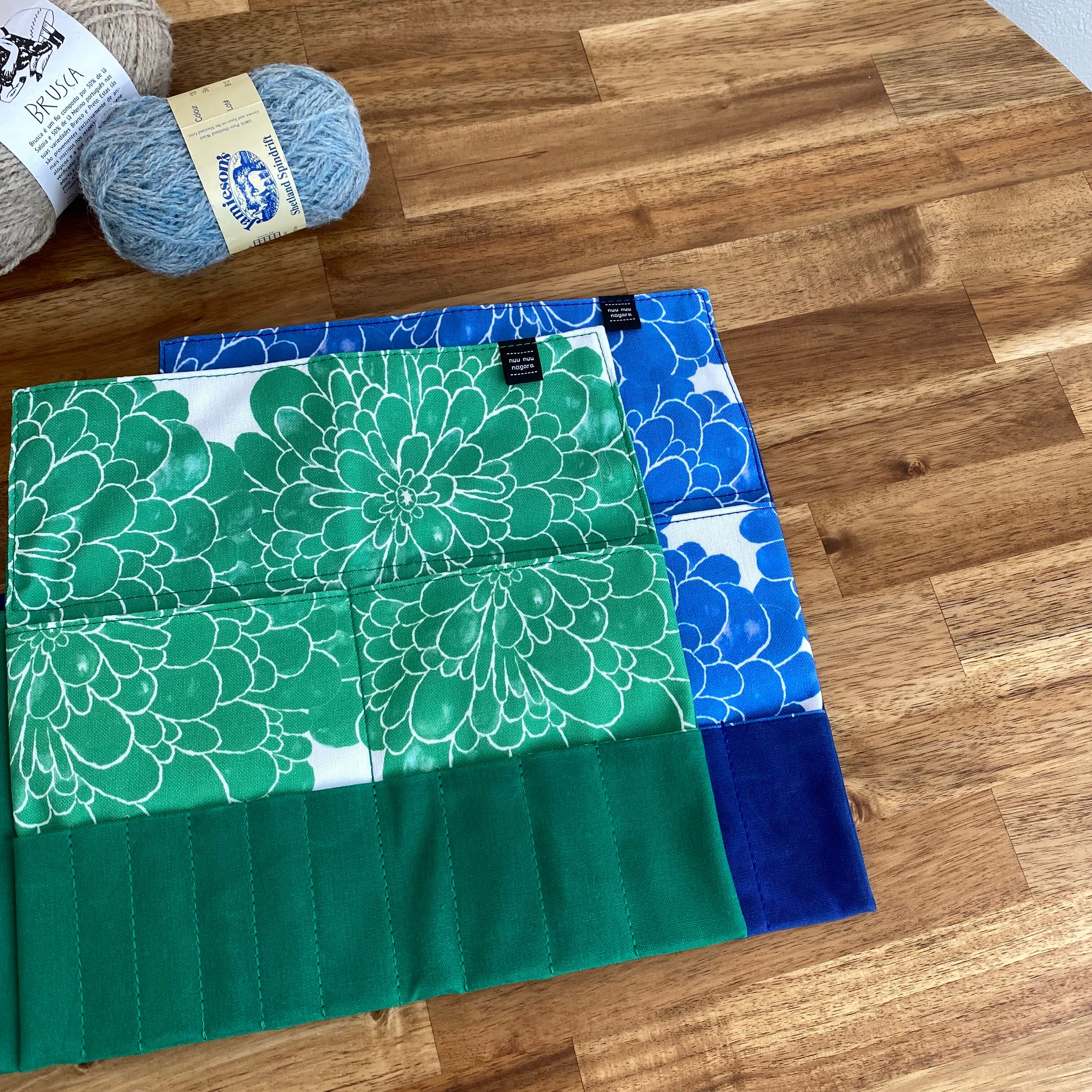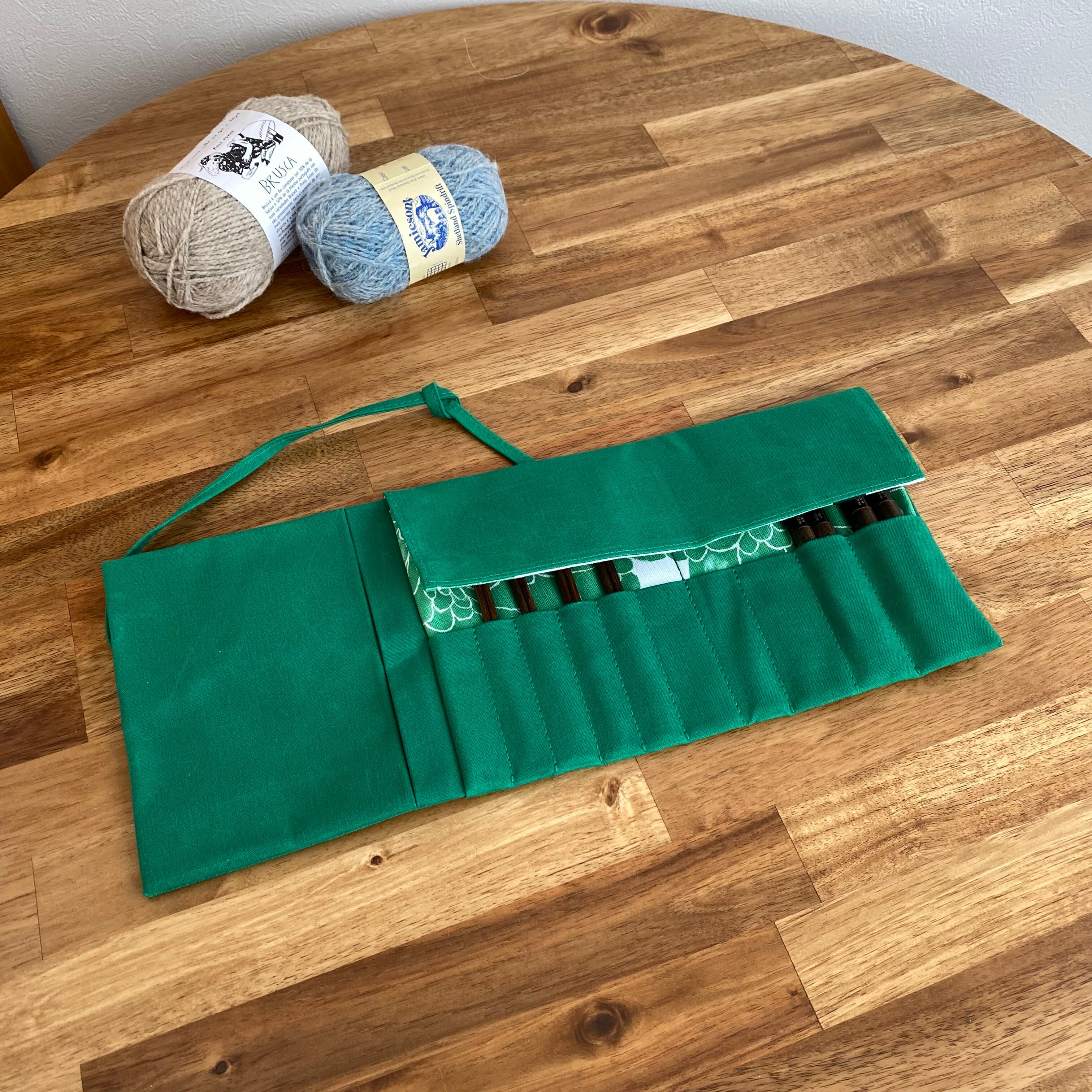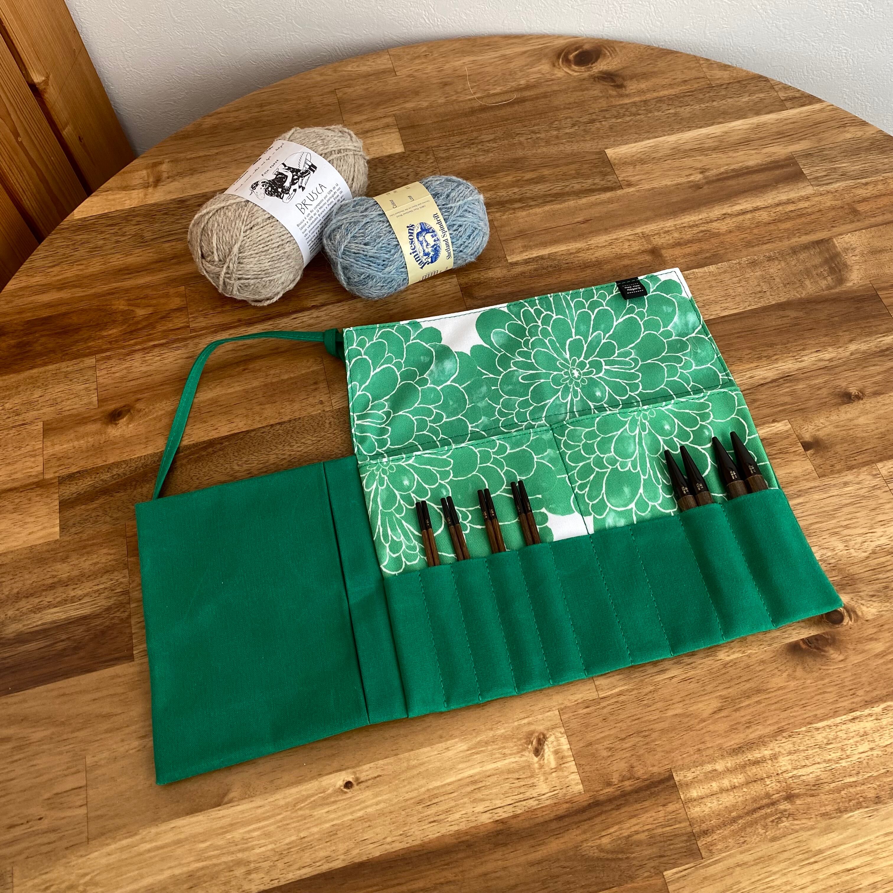 「ダリアグリーン」編み針ケースPATAPATA /レギュラーサイズ・付け替え輪針対応・内ポケット付き