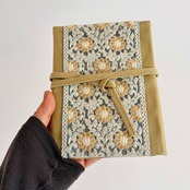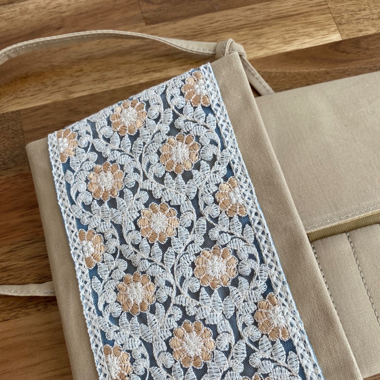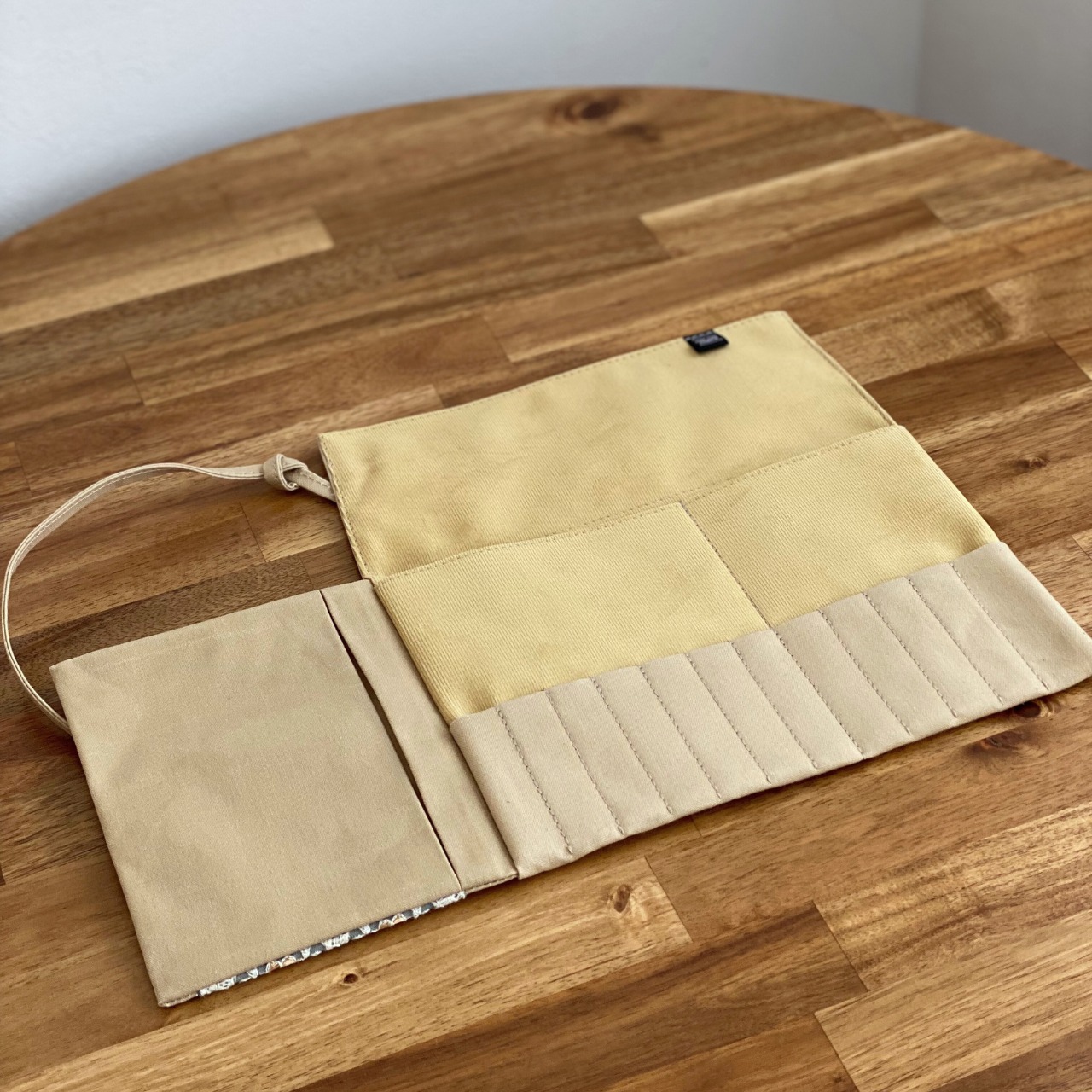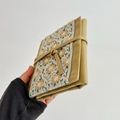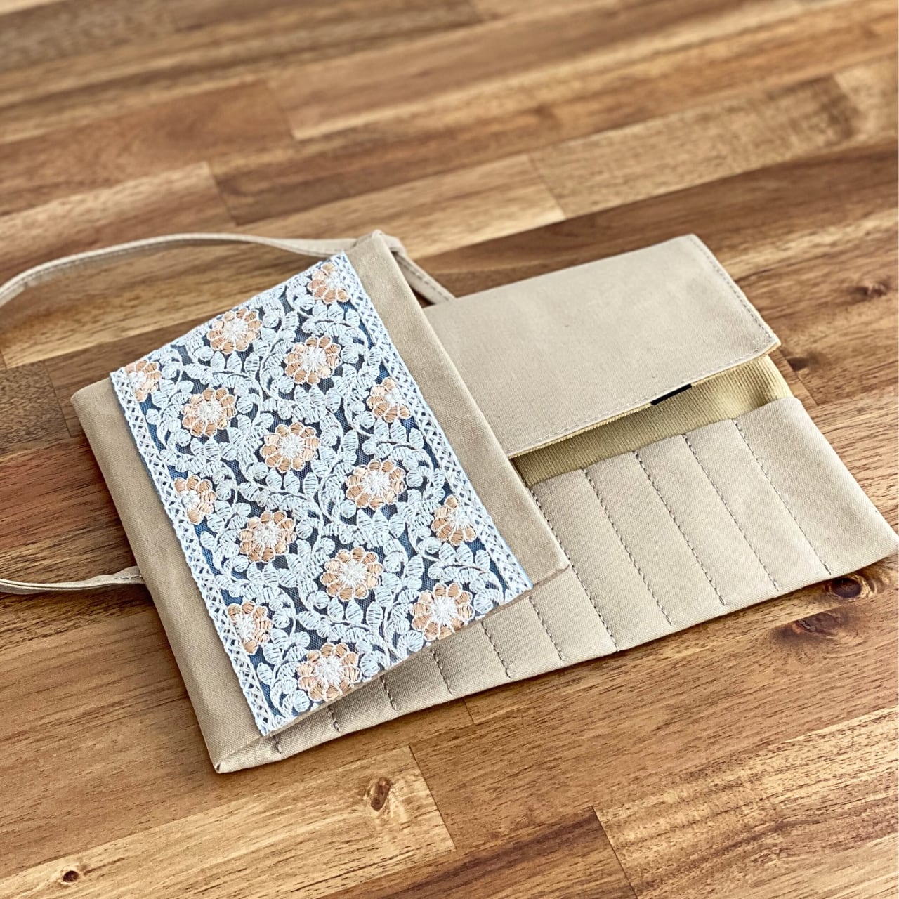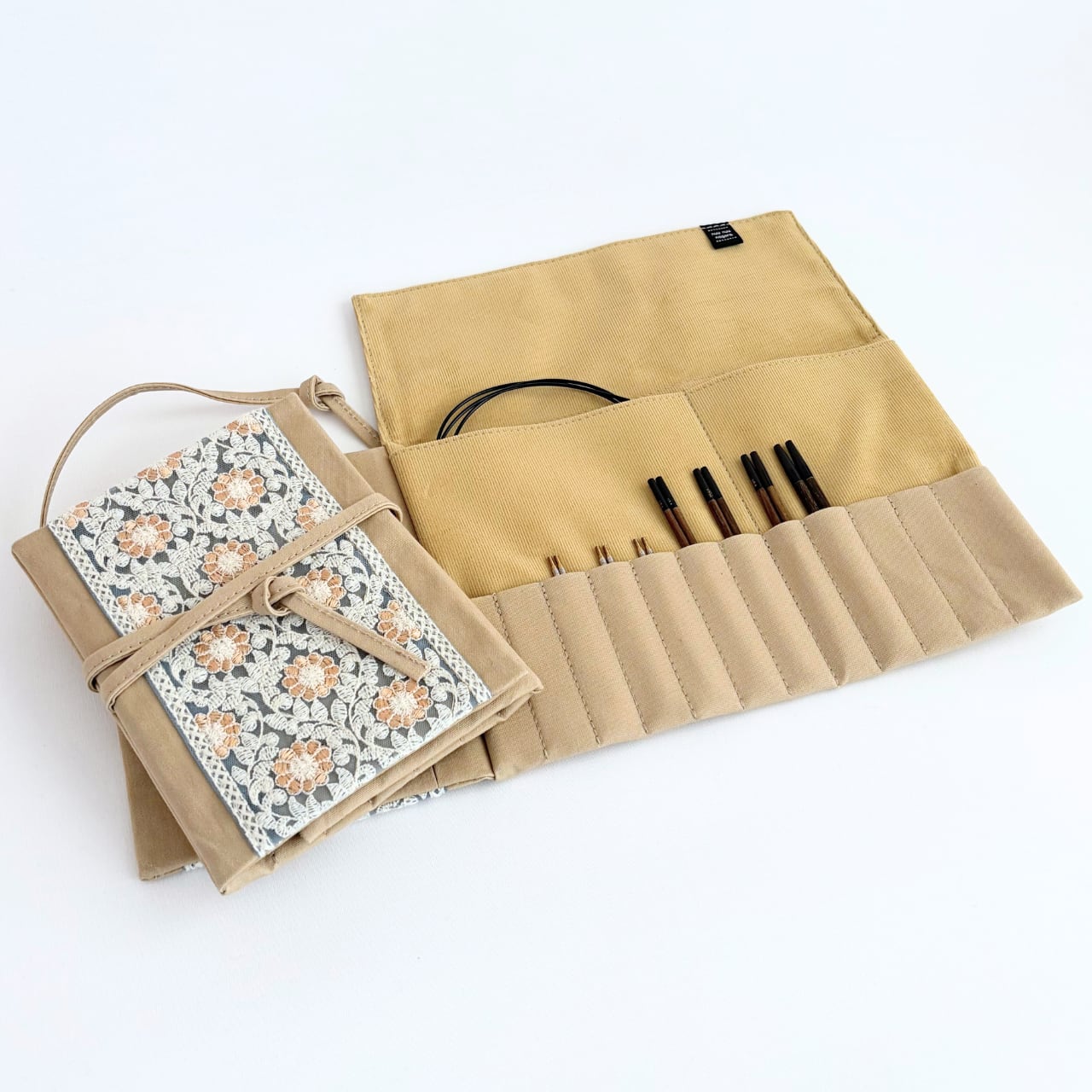 インド刺繍リボン / ベージュ×ハニーイエロー / レギュラーサイズ 編み針ケース PATAPATA / 付け替え輪針用・内ポケット付き