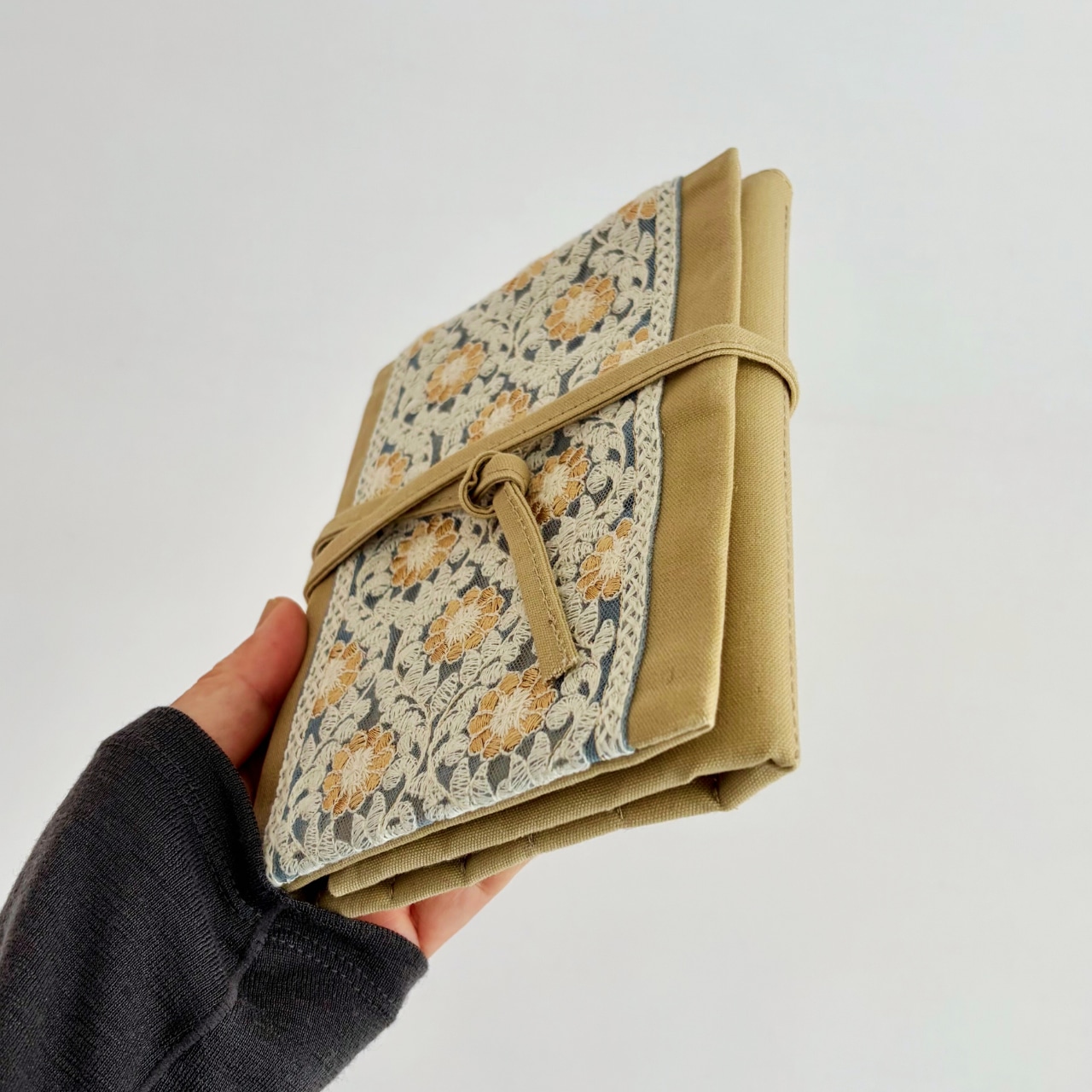 外側:綿100%(パラフィン加工)+インド刺繍リボン