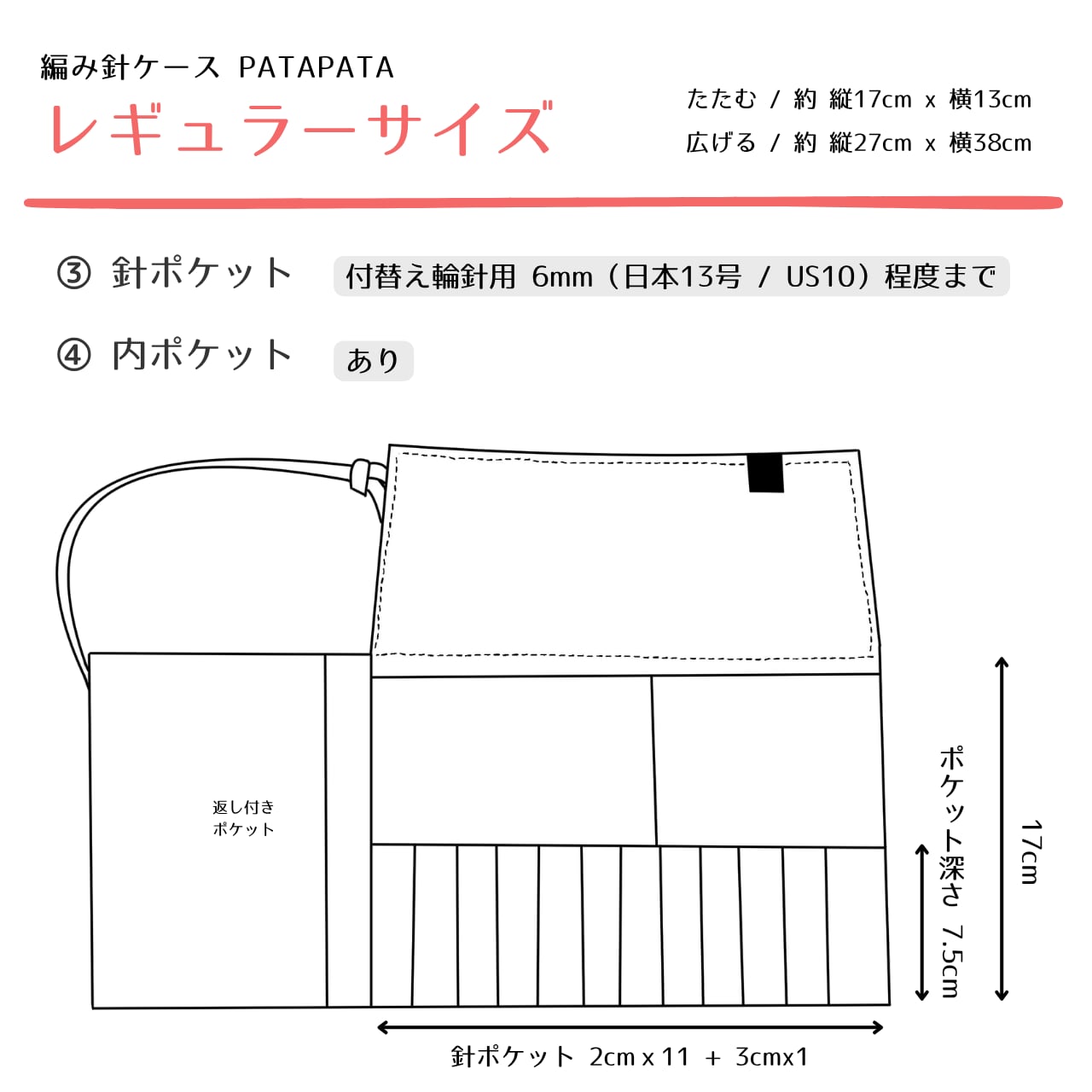 針ポケット:付け替え輪針用(6mm程度まで対応 / 日本13号・US10)