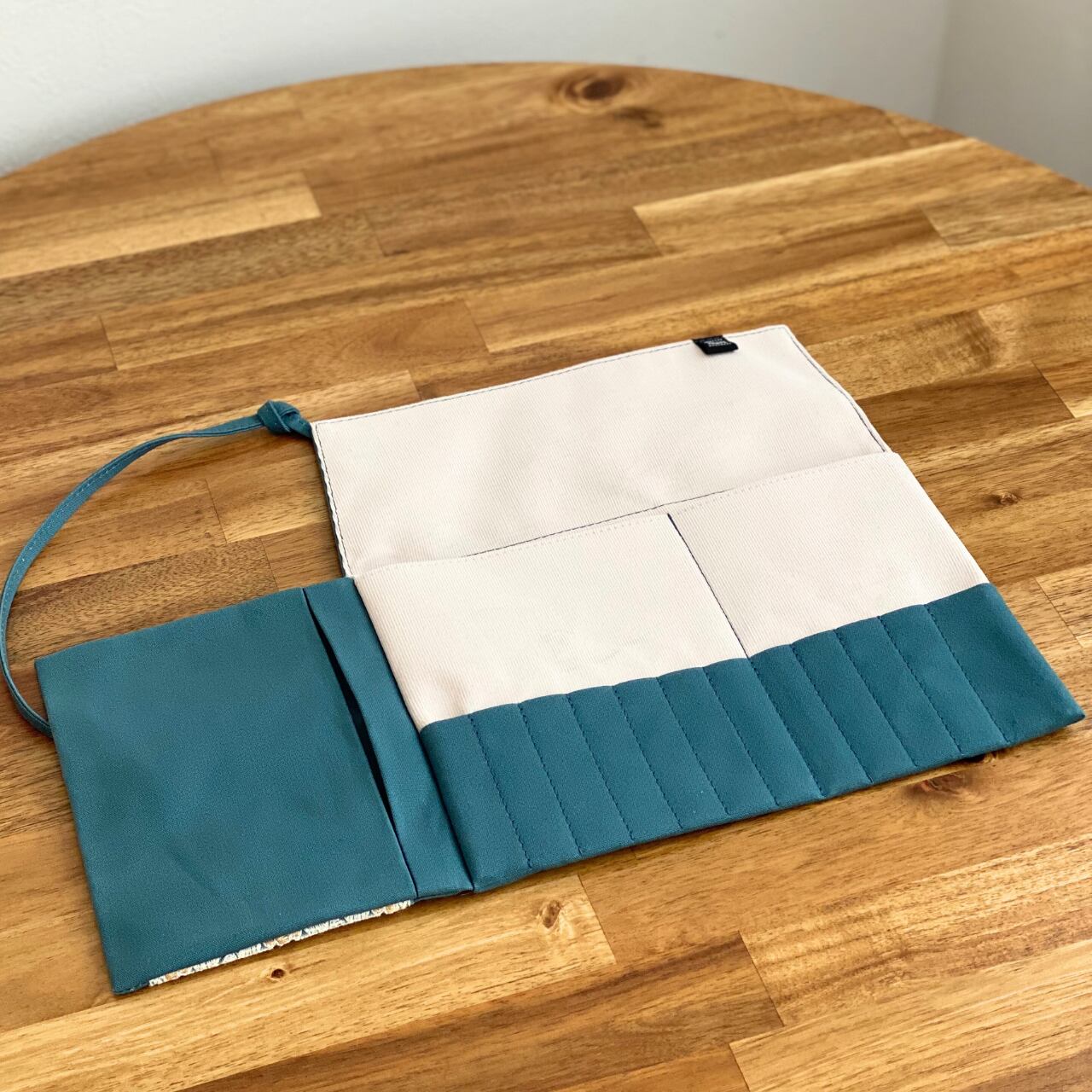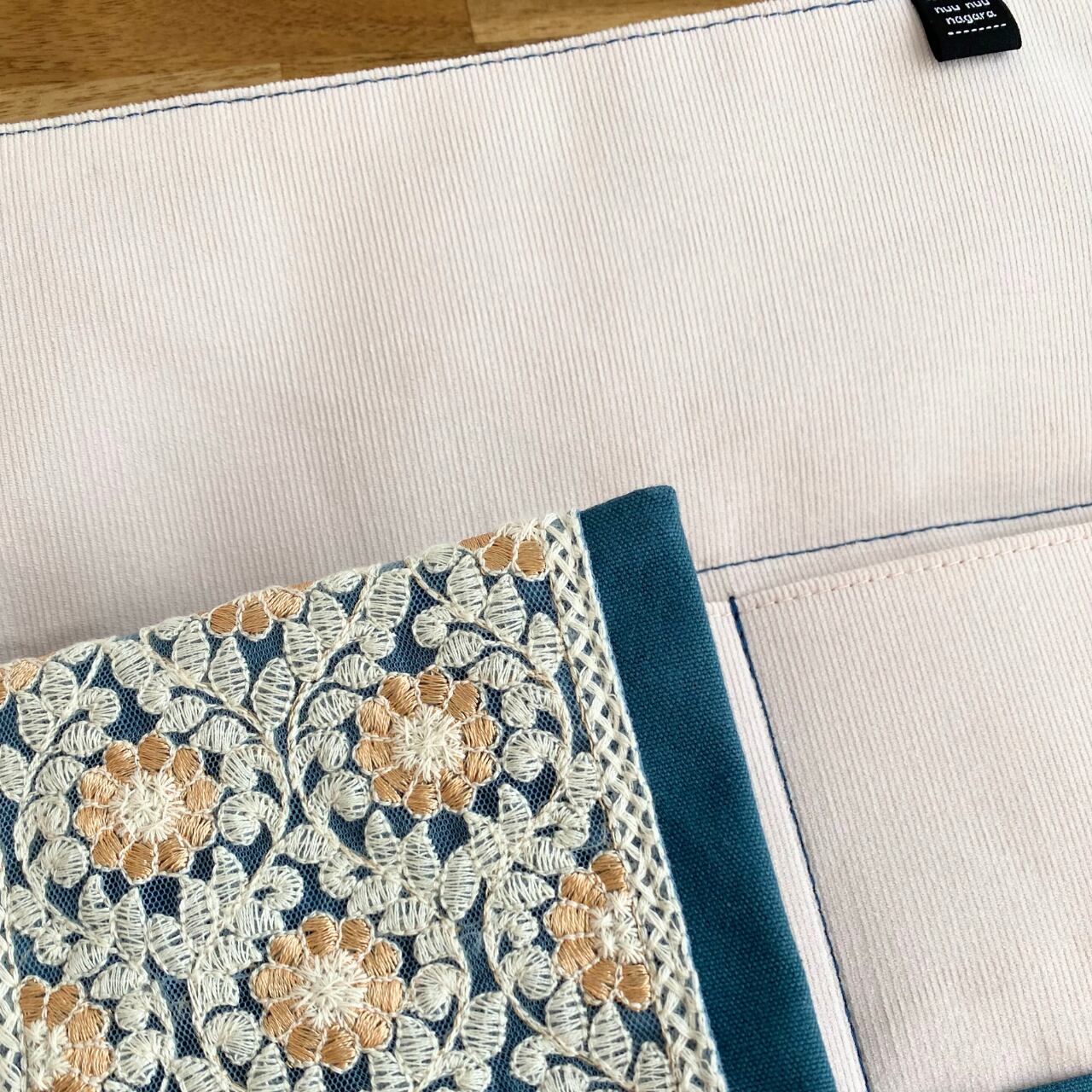編み針ケース PATAPATA|レギュラーサイズ |インド刺繍リボン / 青鈍×ペールピンク | nuunuu nagara(ヌウヌウ ナガラ)