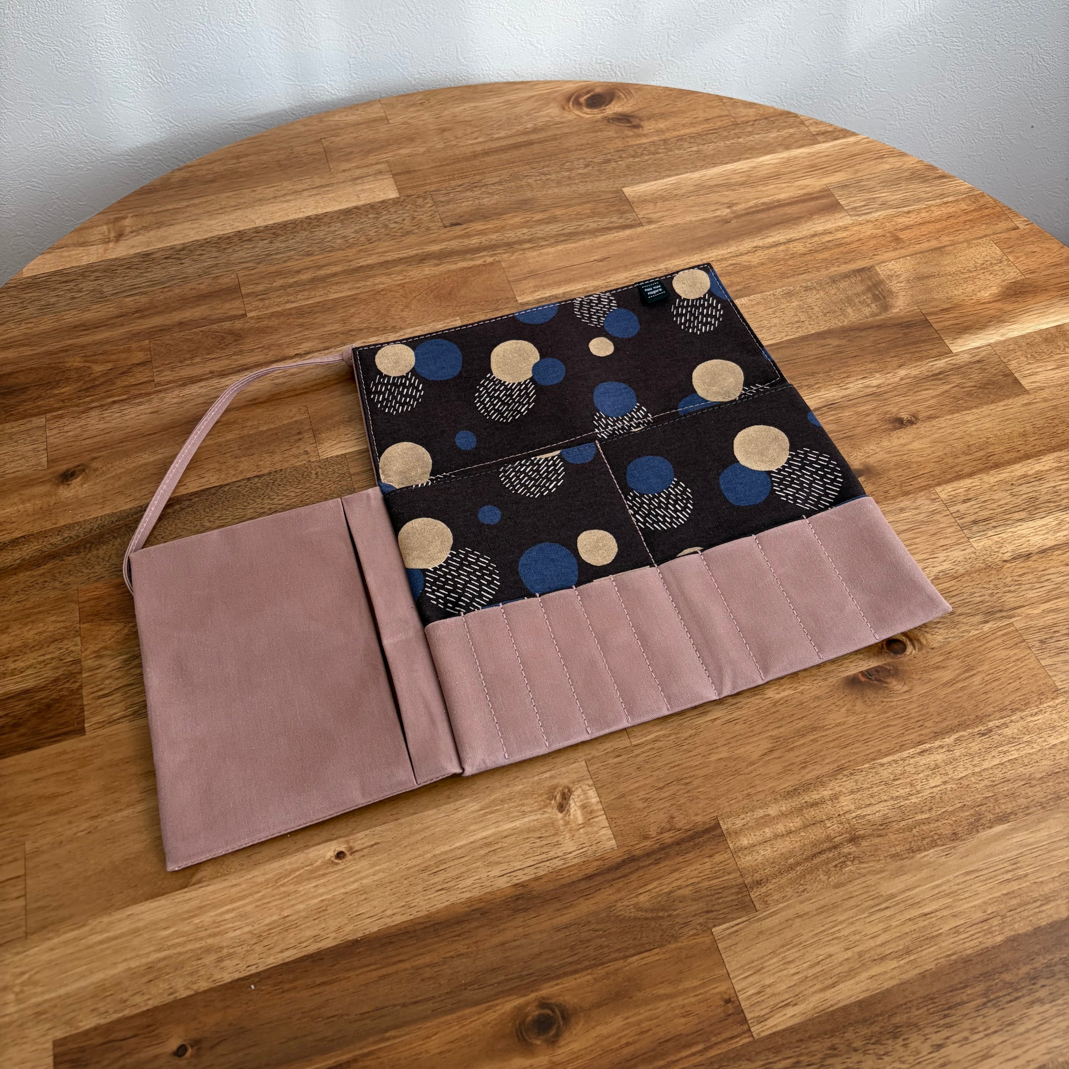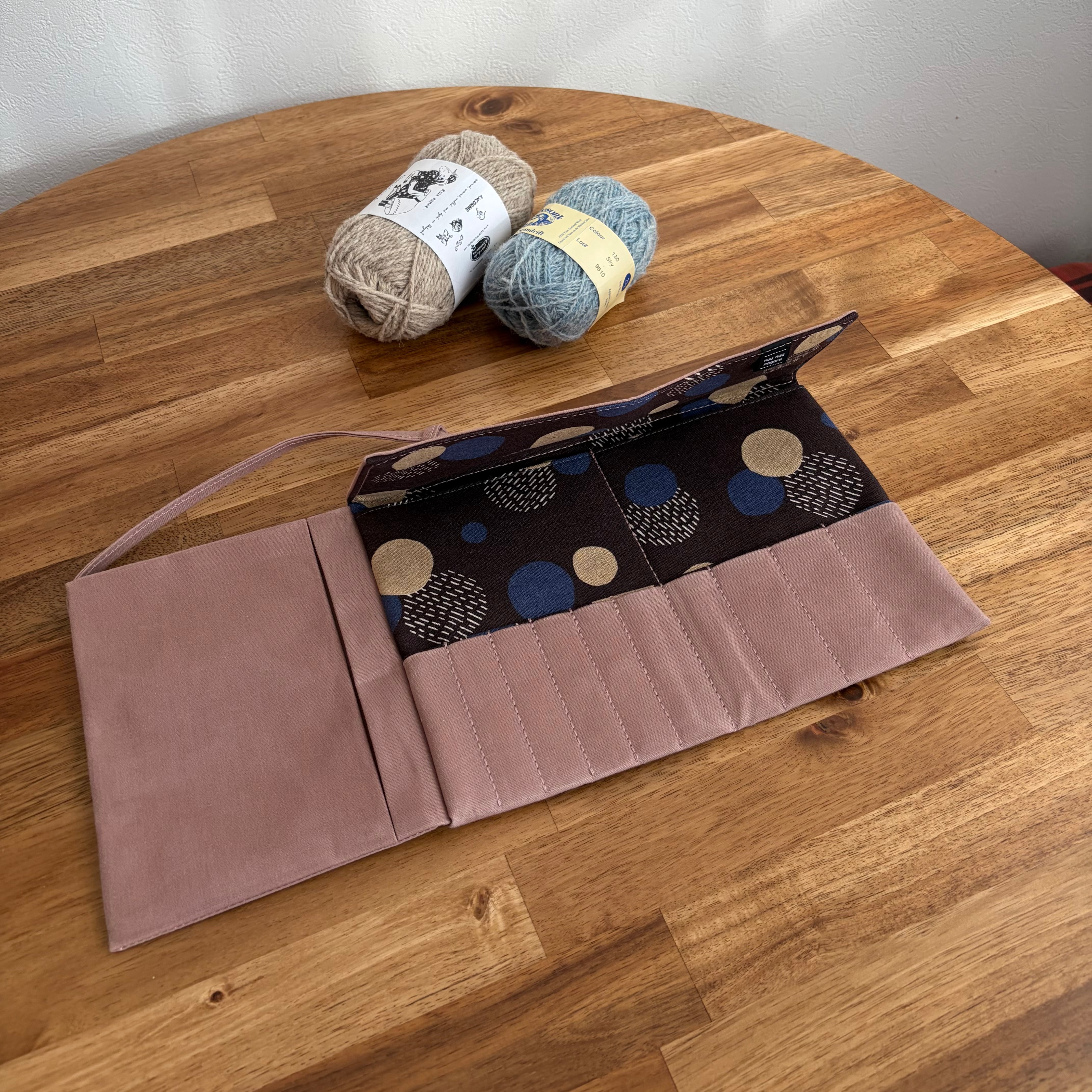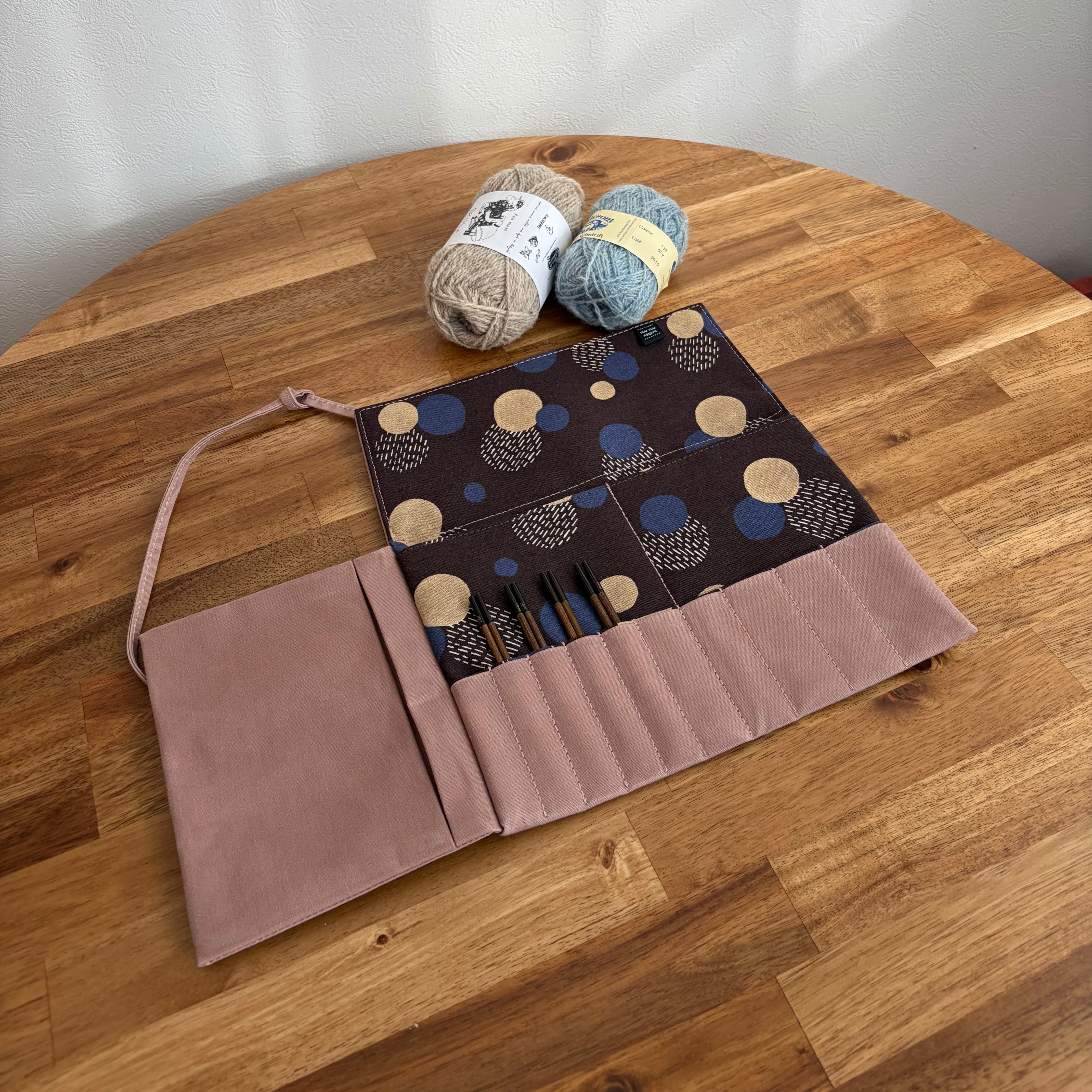 「オールドピンク×ドット」 編み針ケースPATAPATA/レギュラーサイズ・付け替え輪針対応・内ポケット付き