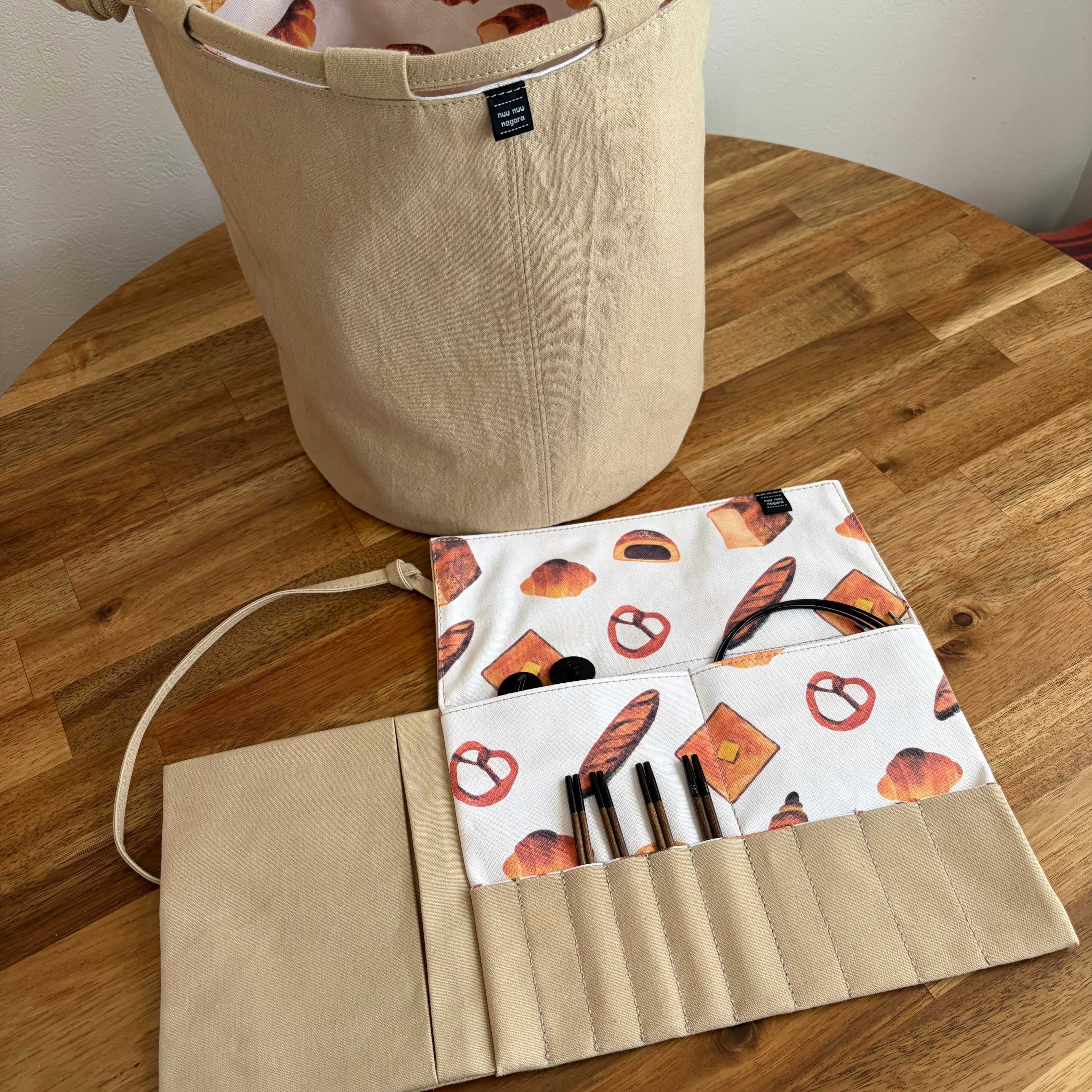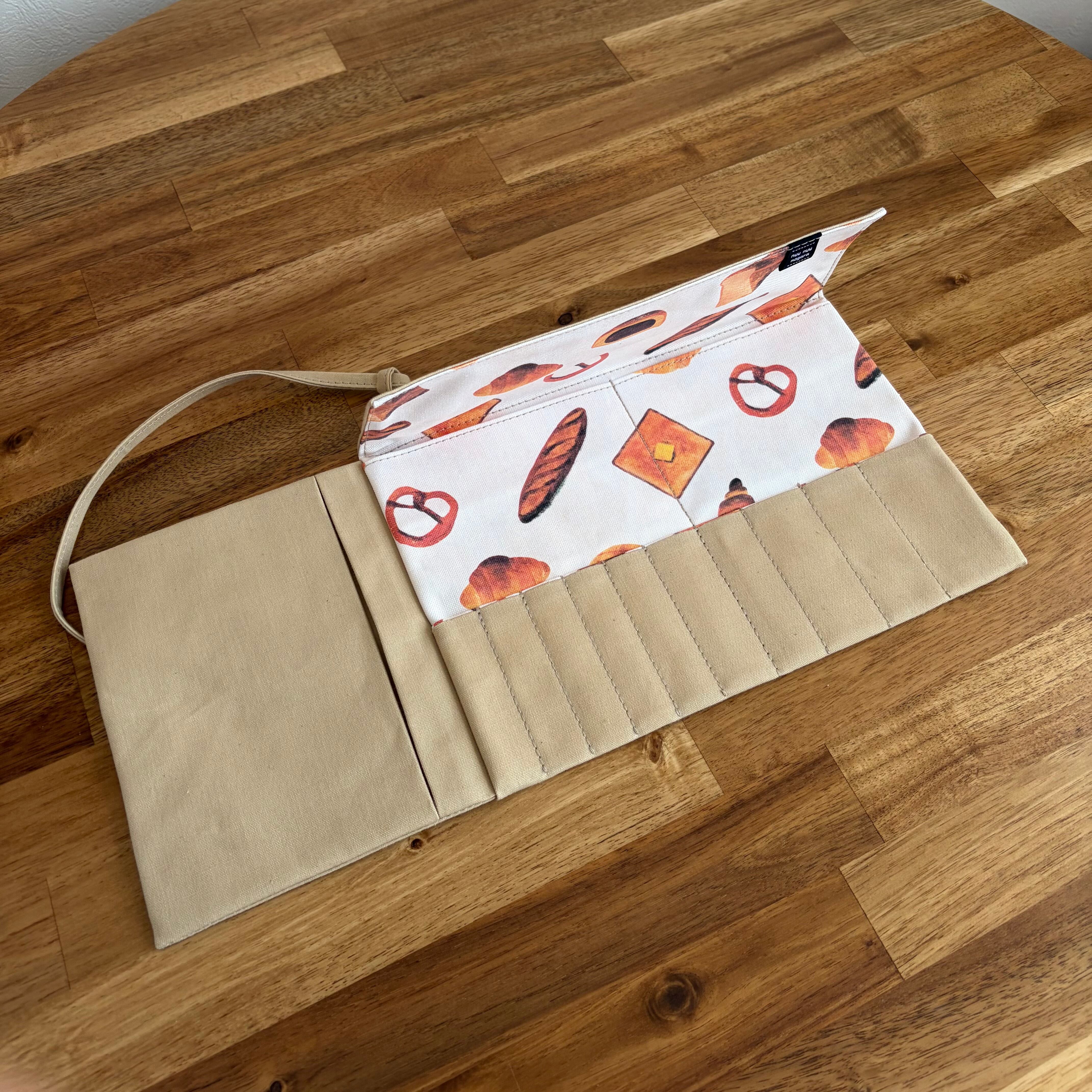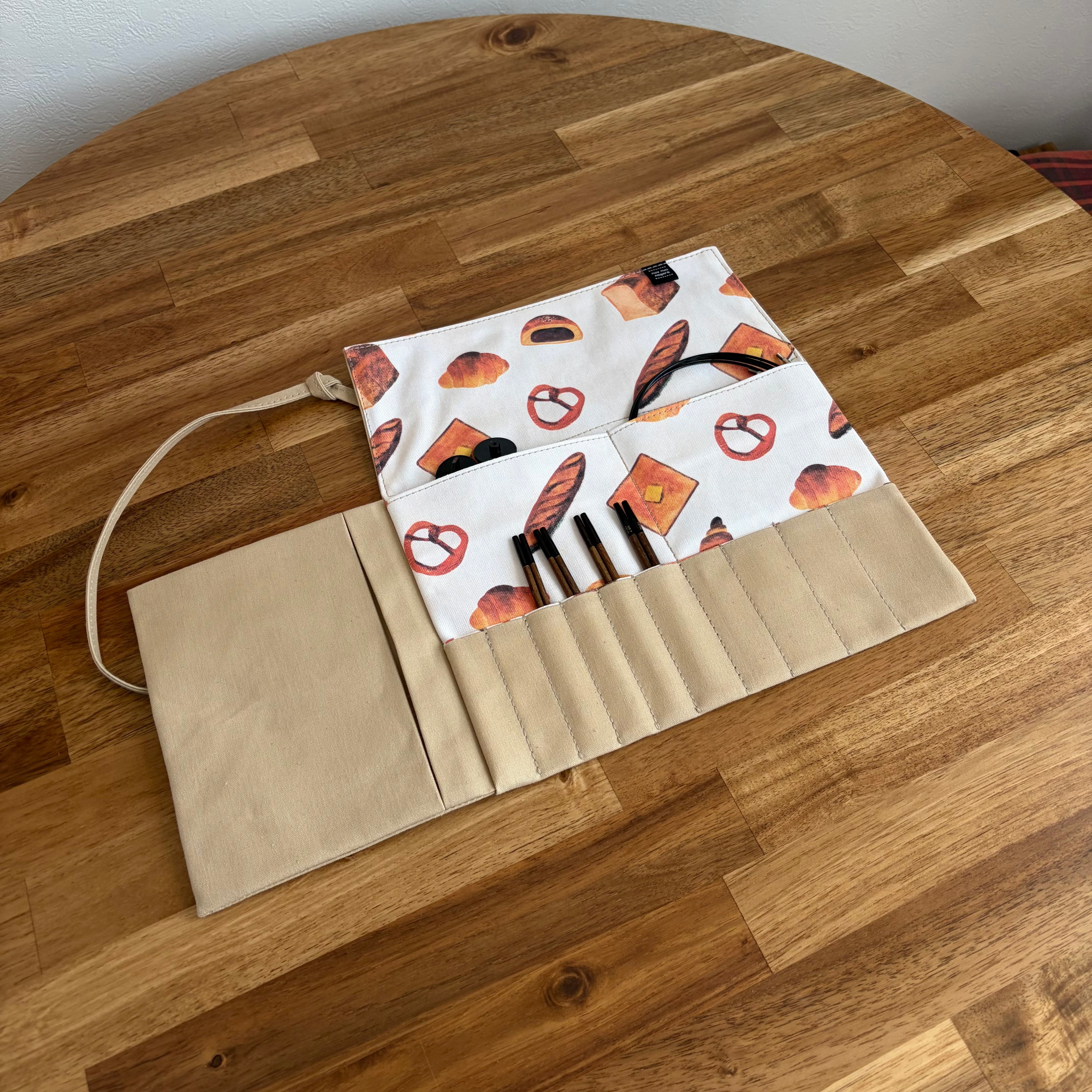 「ベージュ×Bread」 編み針ケースPATAPATA/レギュラーサイズ・付け替え輪針対応・内ポケット付き