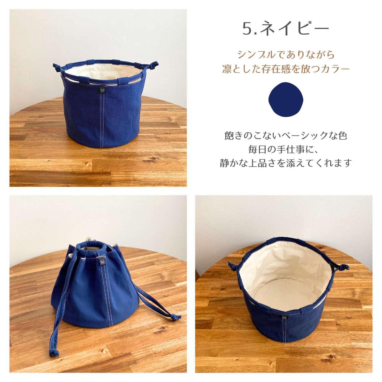 このバッグなら、「途中の作品+毛糸+道具ポーチ」をひとまとめにしておけるので、思い立ったときにすぐ編み物を再開できます。
