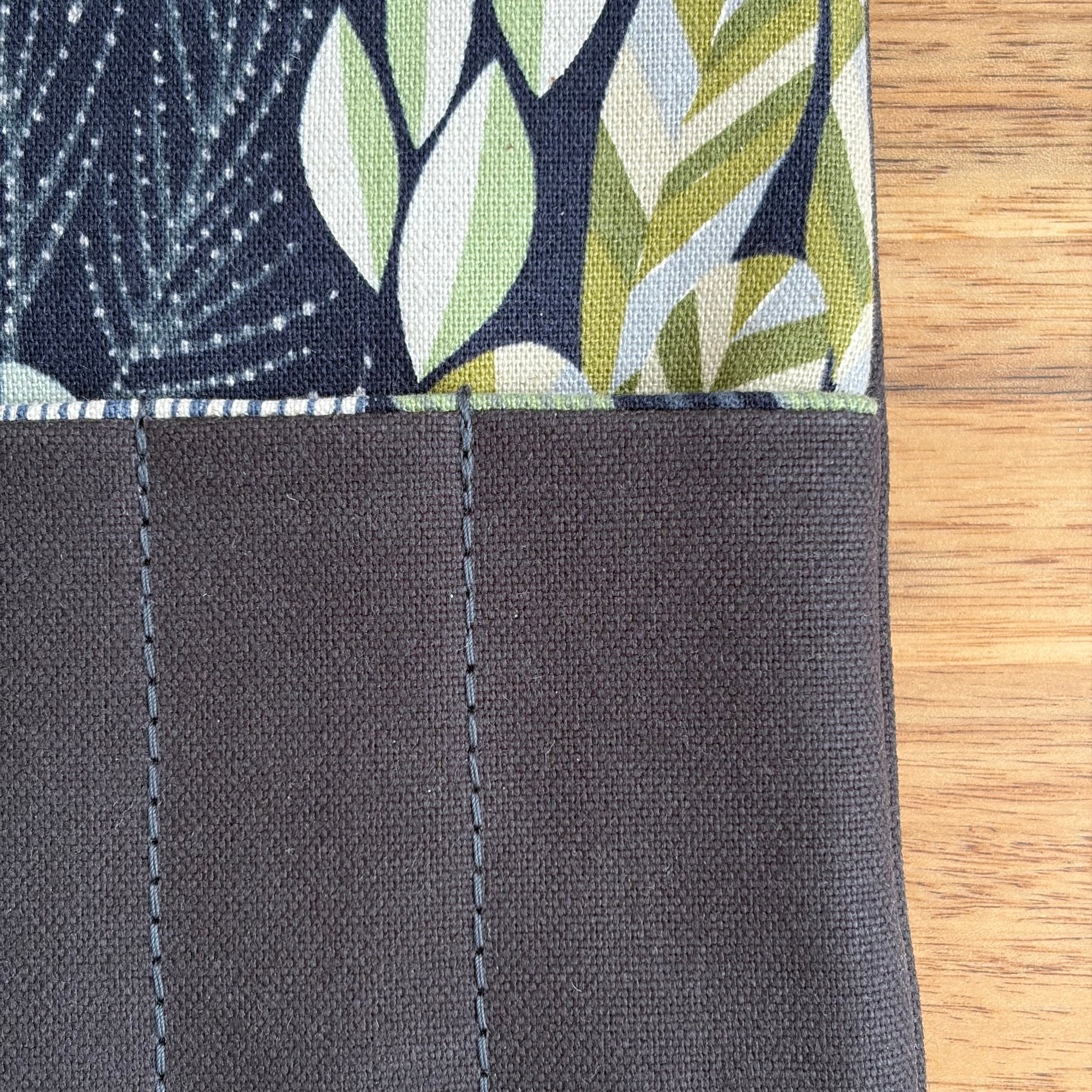 ネイビーにいろいろな葉っぱモチーフをプリントしてあります