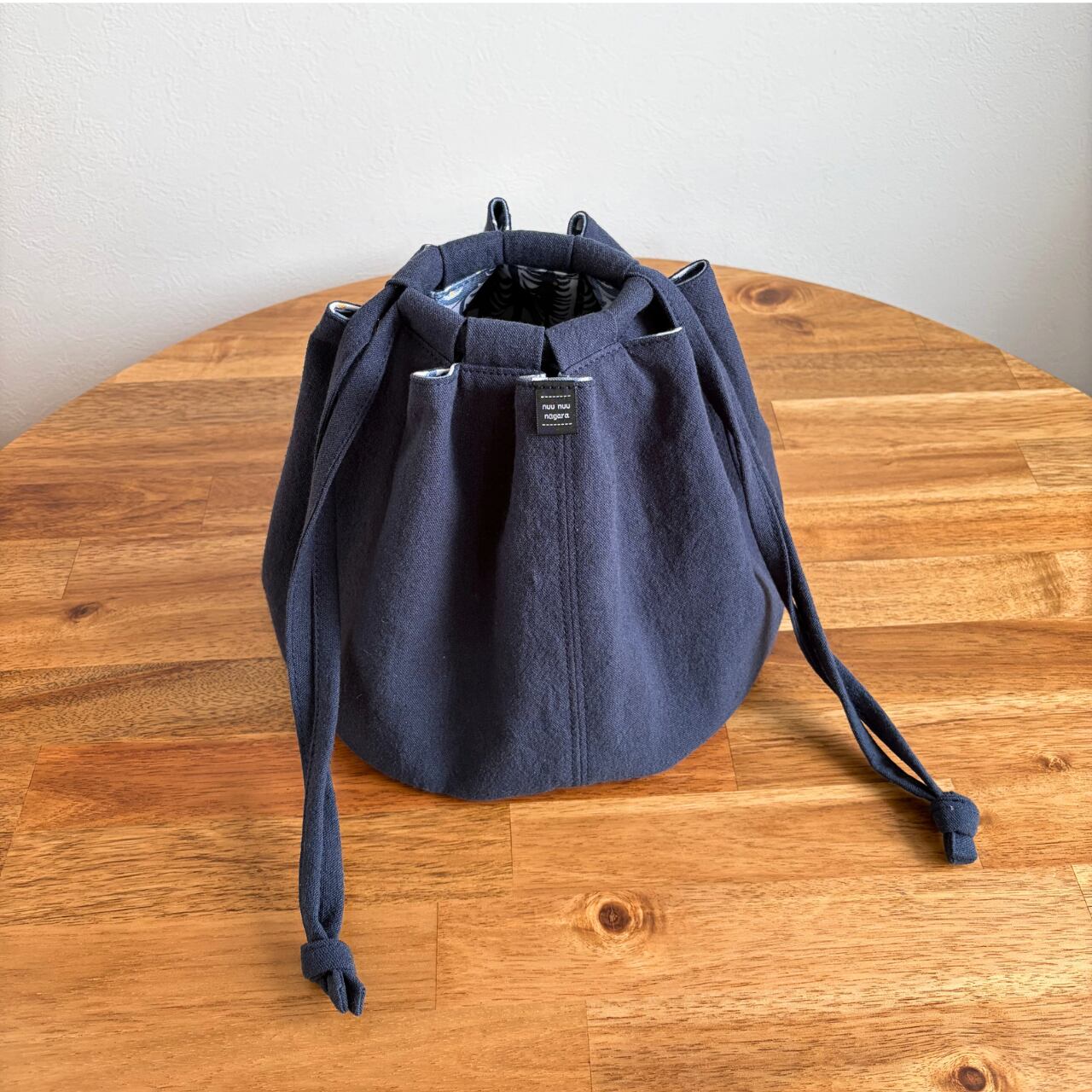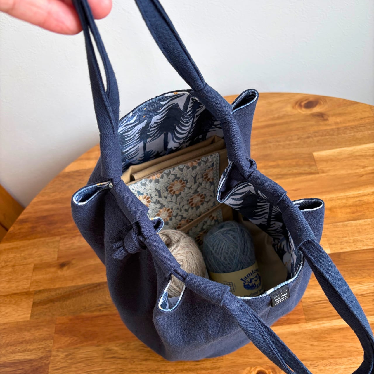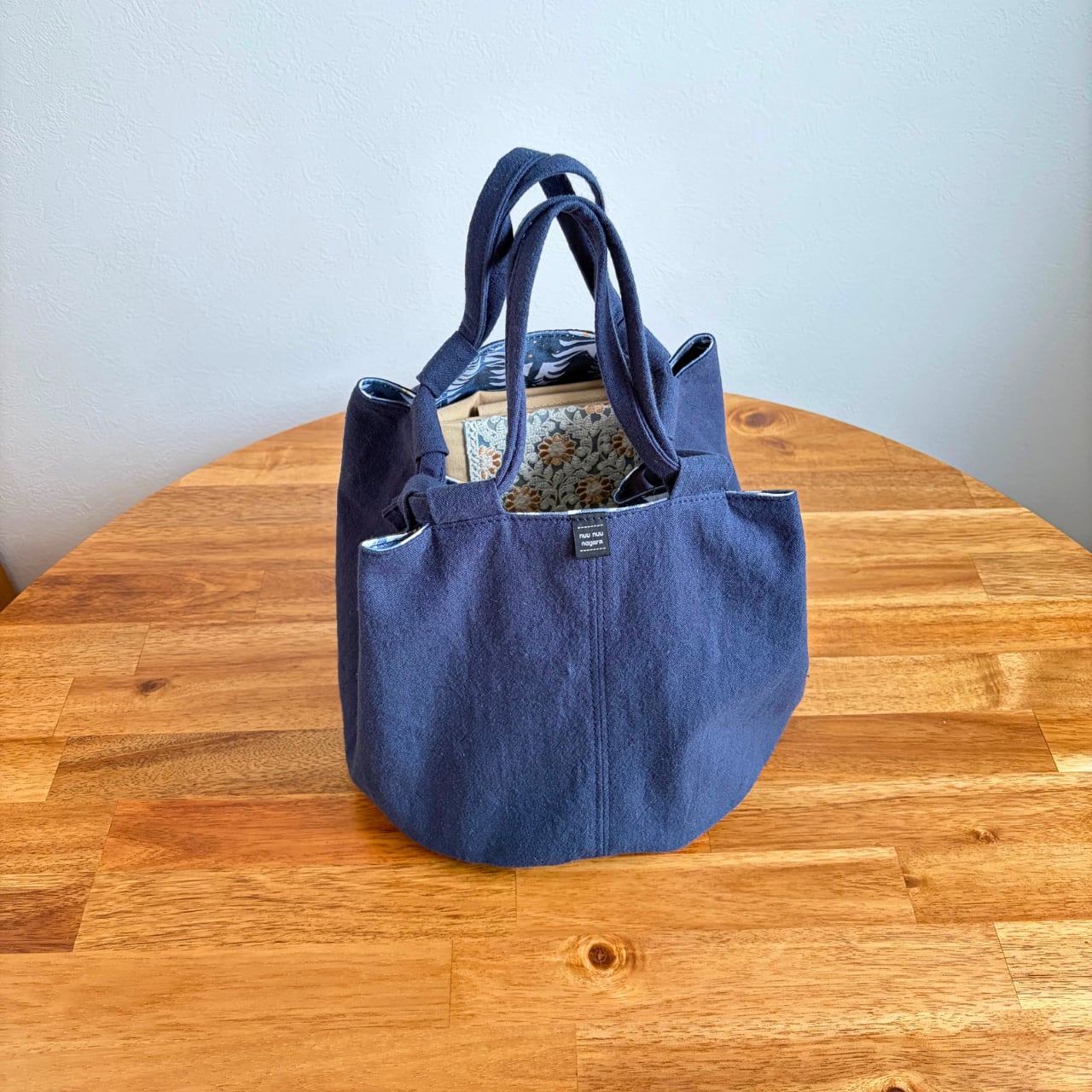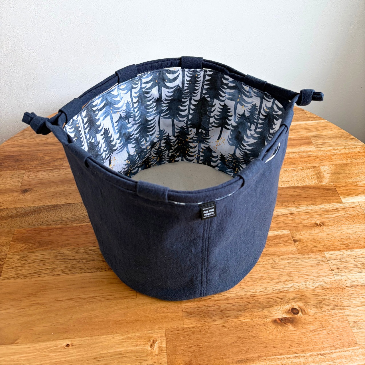プロジェクトバッグ / ネイビーforest / 自立する丸底バッグ / 編み物 手芸 小物収納に