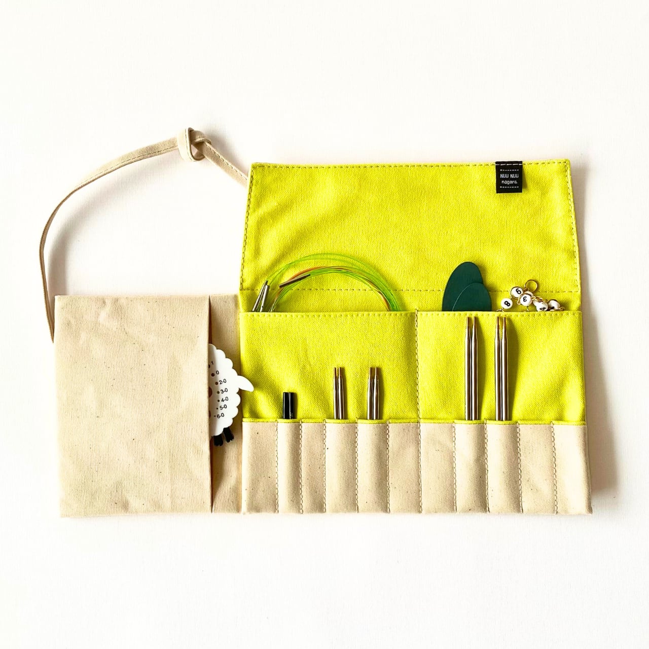 編み針ケース PATAPATA / 生成り x 蛍光イエロー(帆布)