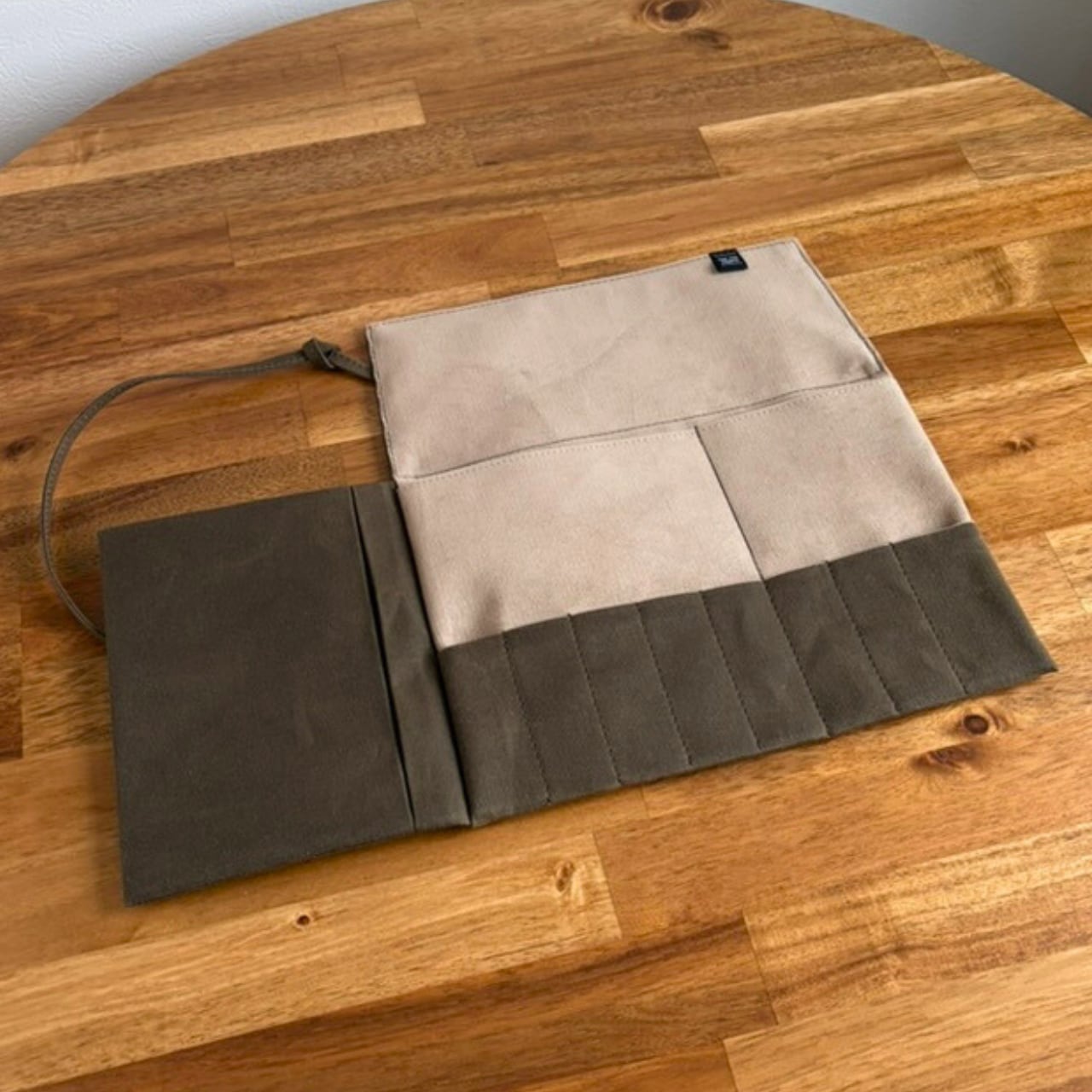 【外側】落ち着いた深いオリーブ(パラフィン加工帆布)