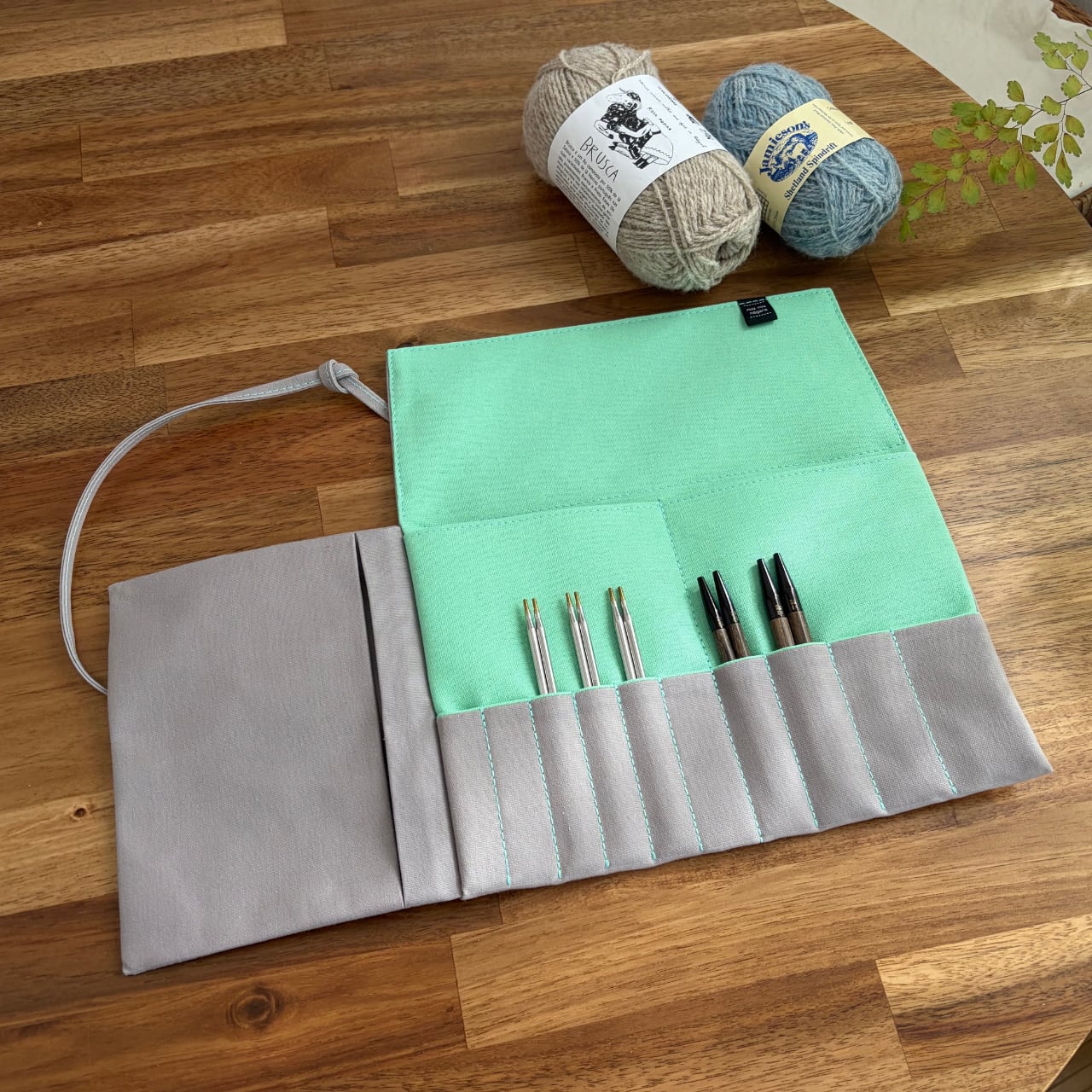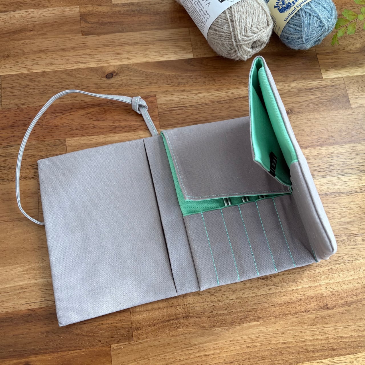 編み針ケース PATAPATA / ライトグレー×ミントグリーン