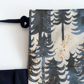 ブルーグレーの木立模様に、あたたかなゴールドの粒が散りばめられた、北欧の冬を思わせるデザインです。